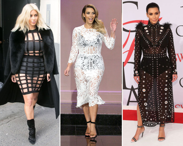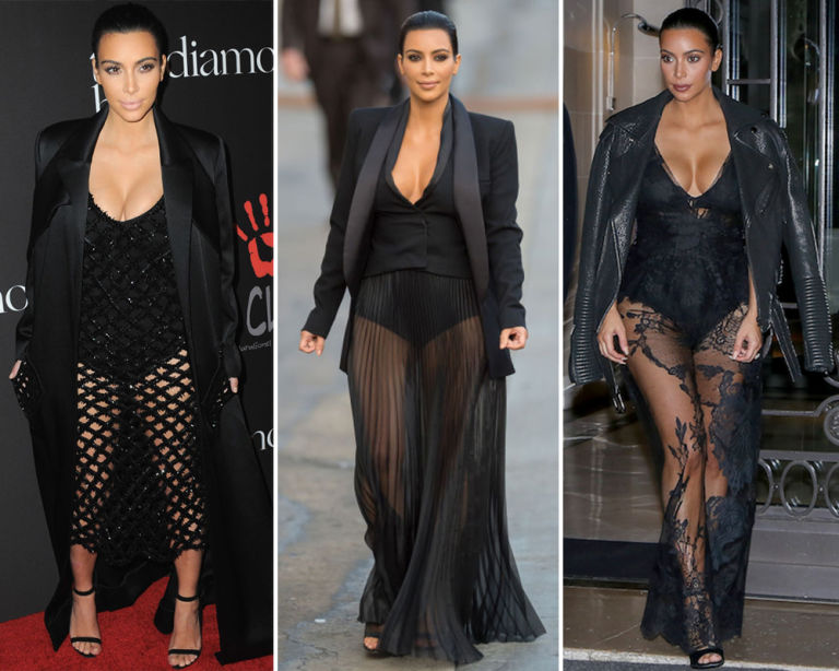 11) Black bra and high-waisted briefs under a sheer dress.