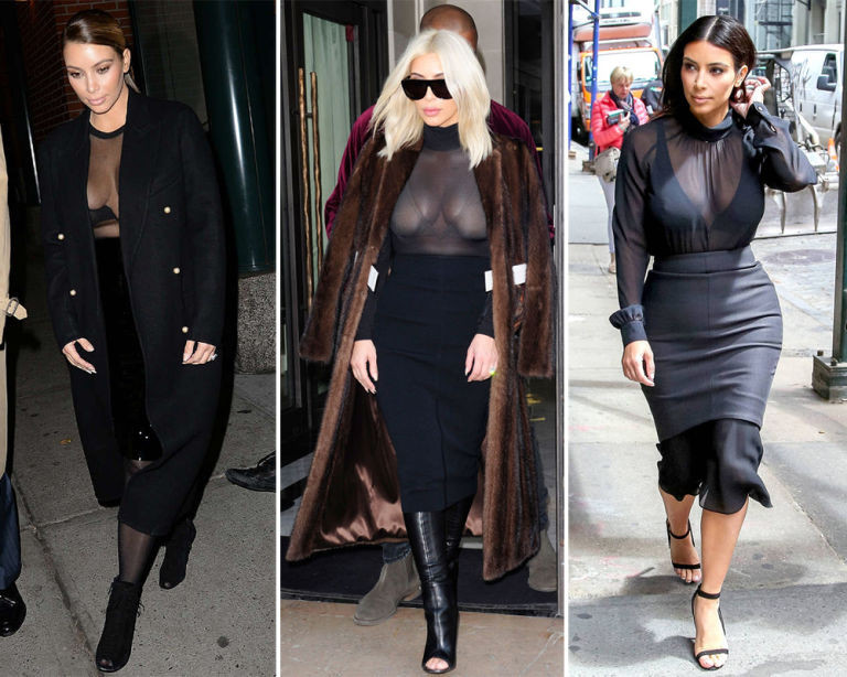 4) Sheer black top and black midi skirt.