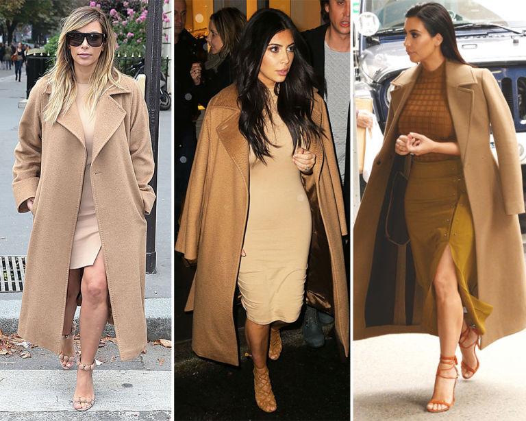 6) Long camel coat and matching dress.