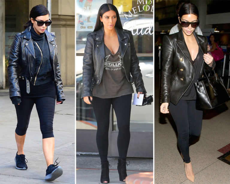 8) Black leather jacket and black leggings.