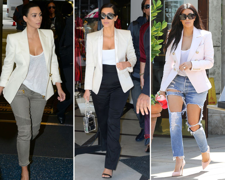 14) White blazer and low-cut white top.